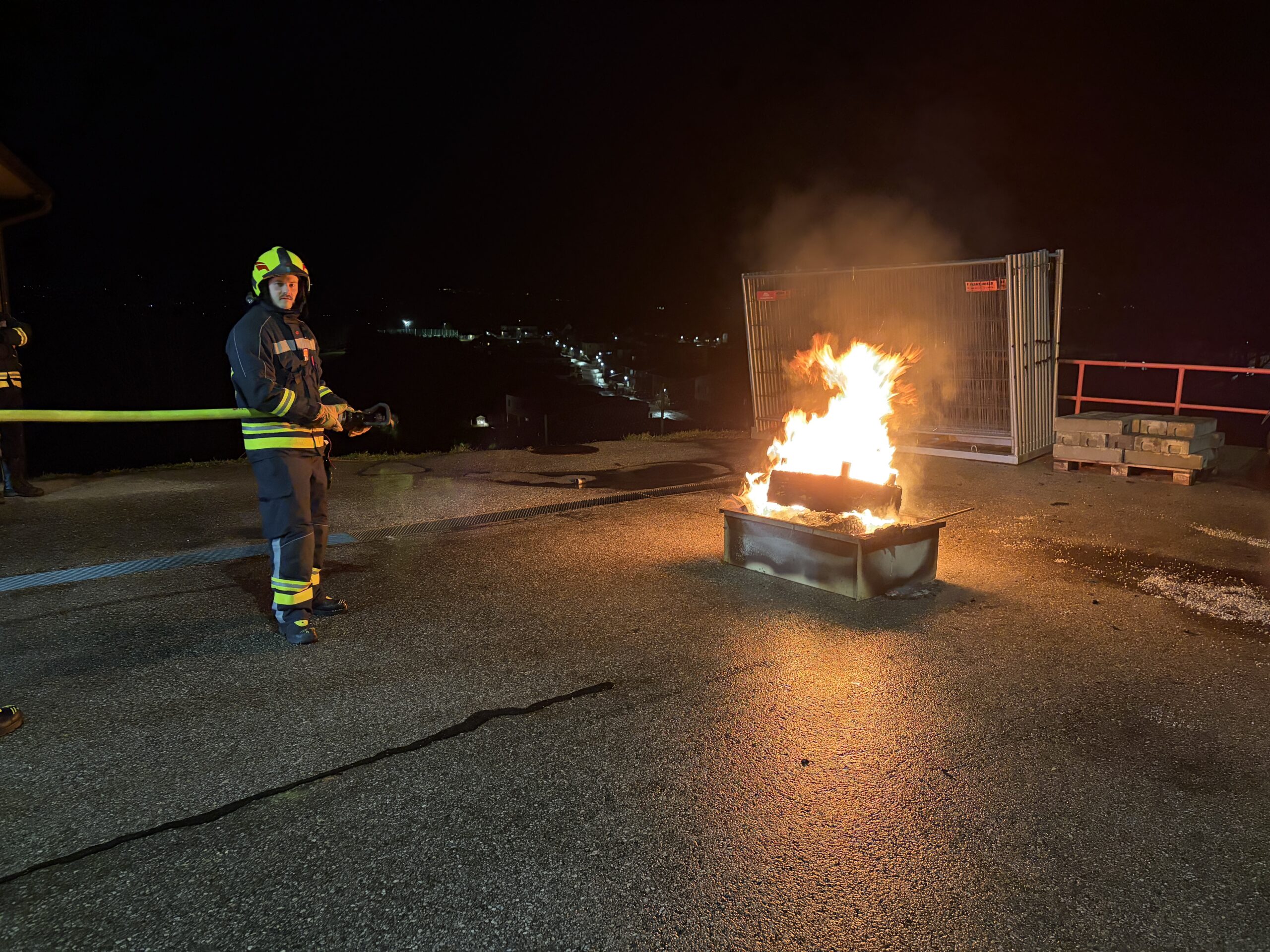 Zum Abschluss wurde das Verhalten von Wasser bei einem Löscheinsatz mit und ohne Schaummittel praktisch demonstriert und die Unterschiede in der Löschwirkung erläutert.