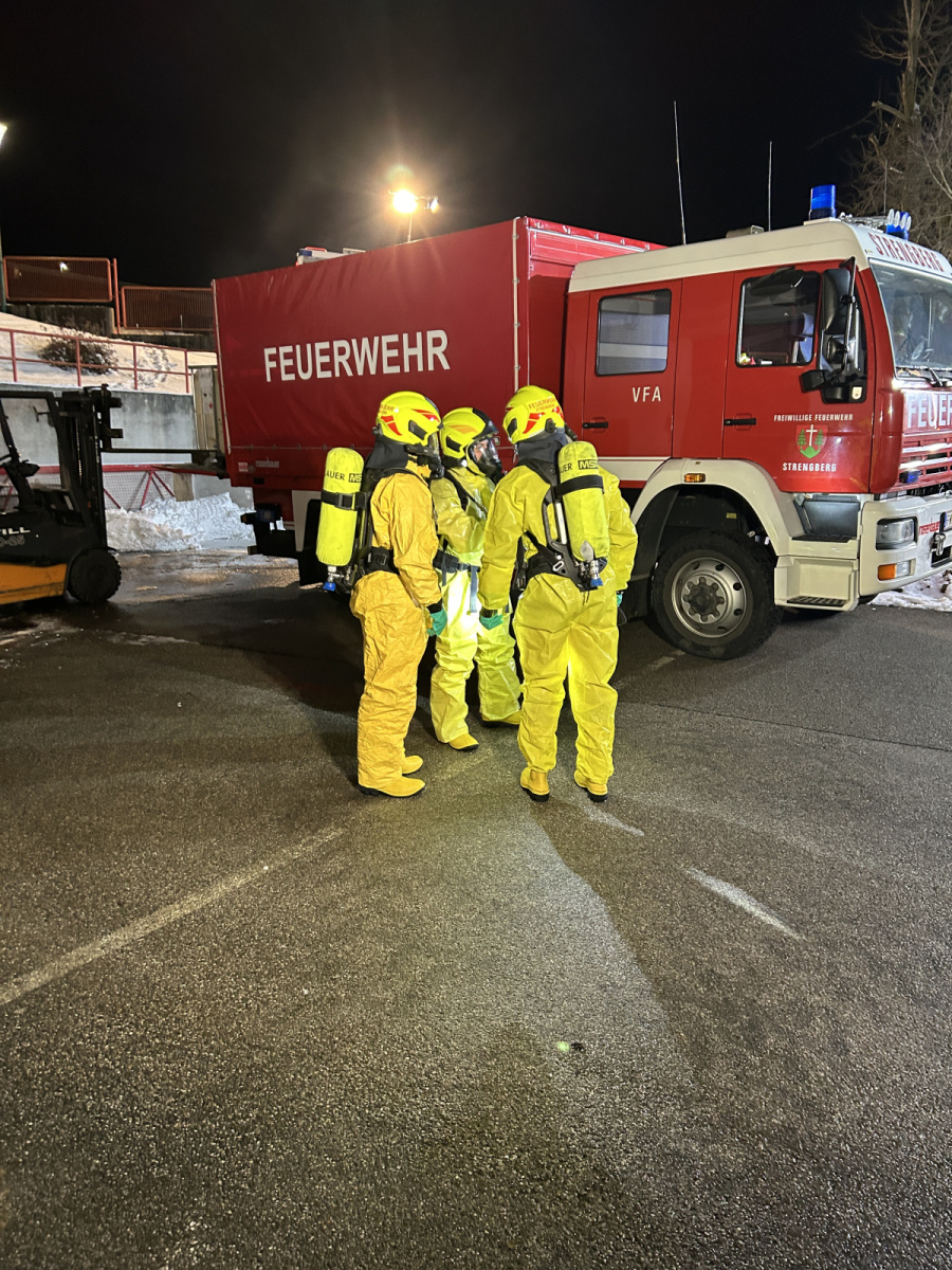 Am Montag stand die monatliche Übung der FF Strengberg ganz im Zeichen des Schadstoffdienstes und wurde im Keller des Feuerwehrhauses abgehalten.